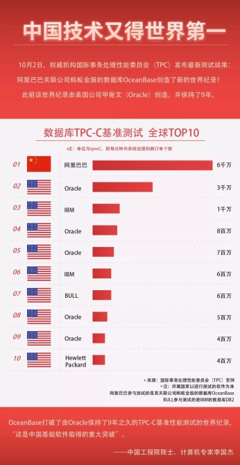 ?過去數(shù)十年,TPC-C一直是海外傳統(tǒng)數(shù)據(jù)庫廠商競技的舞臺,而OceanBase是登上TPC-C排行榜前列、由中國公司完全自主研發(fā)的第一款大型數(shù)據(jù)庫產(chǎn)品。