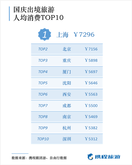今年國(guó)慶黃金周,國(guó)人出境游花費(fèi)多少?報(bào)告顯示,國(guó)慶出境游的人均花費(fèi)是國(guó)內(nèi)游價(jià)格的近2倍。上海、北京、重慶、廈門(mén)、沈陽(yáng)、西安、成都、南京、杭州和深圳是出境游消費(fèi)力排名前十的出發(fā)城市。其中,上海、北京的出境游人均花費(fèi)均超過(guò)7000元,遠(yuǎn)超其他城市。