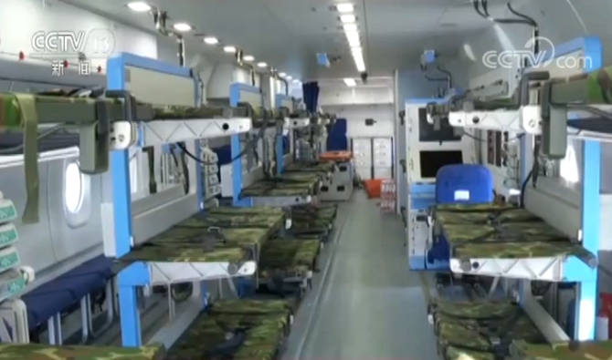 運(yùn)-9醫(yī)療機(jī),是加裝機(jī)載醫(yī)療救護(hù)系統(tǒng),對(duì)飛機(jī)相關(guān)系統(tǒng)進(jìn)行適應(yīng)性改進(jìn)研制而成的專用醫(yī)療救護(hù)飛機(jī)。醫(yī)療機(jī)配備7名專業(yè)醫(yī)療人員以及重癥監(jiān)護(hù)、心肺復(fù)蘇、心電超聲等多種醫(yī)療設(shè)備。