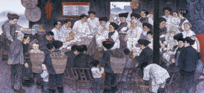 王奮英中國(guó)畫(huà)《暖心——十八洞村貧困戶精準(zhǔn)識(shí)別公示會(huì)》。