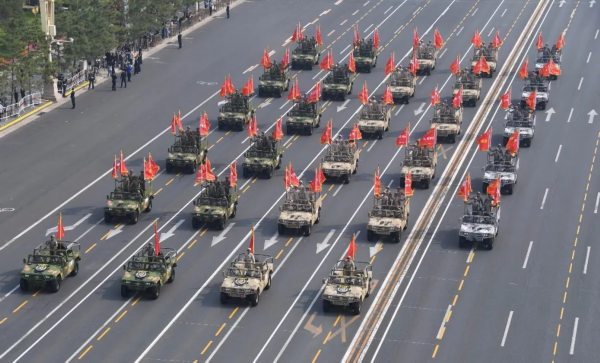 ?閱兵分列式上,25輛猛士戰(zhàn)車(chē)載著100面榮譽(yù)戰(zhàn)旗,緩緩駛過(guò)天安門(mén)。