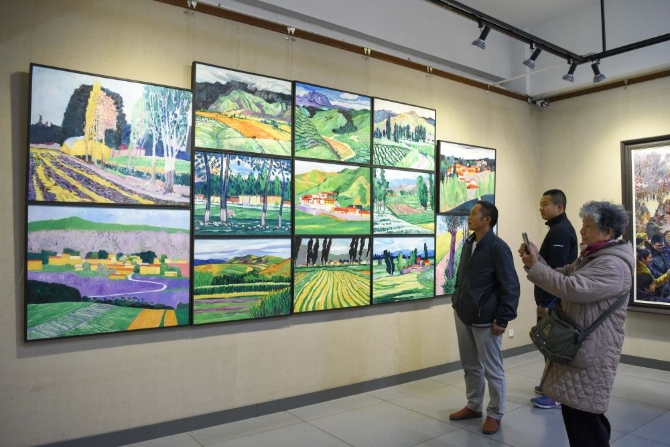 10月5日,參觀者在烏魯木齊市美術(shù)館參觀。新華社記者 丁磊 攝