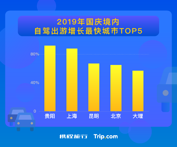 報(bào)告顯示,今年國(guó)慶黃金周,國(guó)內(nèi)自駕出游增速最快城市的前五位城市分別是貴陽(yáng)、上海、昆明、北京、大理。其中,貴陽(yáng)的自駕增速接近100%,上海超過(guò)80%,昆明、北京、大理均超過(guò)40%。