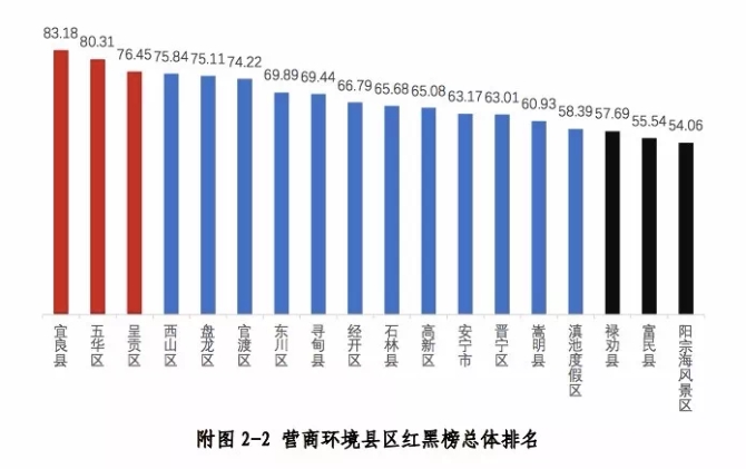 “紅榜”上榜縣區(qū)主要因?yàn)橹匾暊I(yíng)商環(huán)境建設(shè),組織工作開展到位,在多個(gè)指標(biāo)中表現(xiàn)優(yōu)異,值得其他縣區(qū)借鑒學(xué)習(xí)。例如五華區(qū)通過加強(qiáng)部門協(xié)作,推進(jìn)個(gè)體工商戶簡(jiǎn)易登記和全程電子化改革試點(diǎn)工作,強(qiáng)化電子營(yíng)業(yè)執(zhí)照的管理和應(yīng)用,率先落實(shí)開辦企業(yè)便利化工作。宜良縣采取多種措施優(yōu)化不動(dòng)產(chǎn)登記流程。呈貢區(qū)在全市率先掛牌成立行政審批局,在“放管服”改革取得實(shí)質(zhì)性突破,初步實(shí)現(xiàn)“一顆印章管審批”。