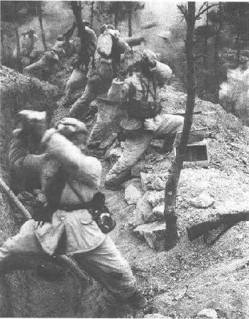 1951年2月,在抗美援朝戰(zhàn)爭 “中元山阻擊戰(zhàn)”中,面對敵機(jī)的輪番轟炸,英勇的戰(zhàn)士們一齊開火,給予敵人沉重打擊;在敵人猛烈的炮火攻擊下,戰(zhàn)士們頑強(qiáng)抵抗,連續(xù)擊退敵人的進(jìn)攻。