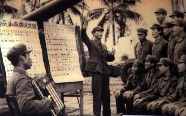 △圖為教新入伍戰(zhàn)士唱連歌。
