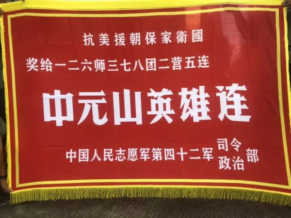 △“中元山英雄連”連旗。