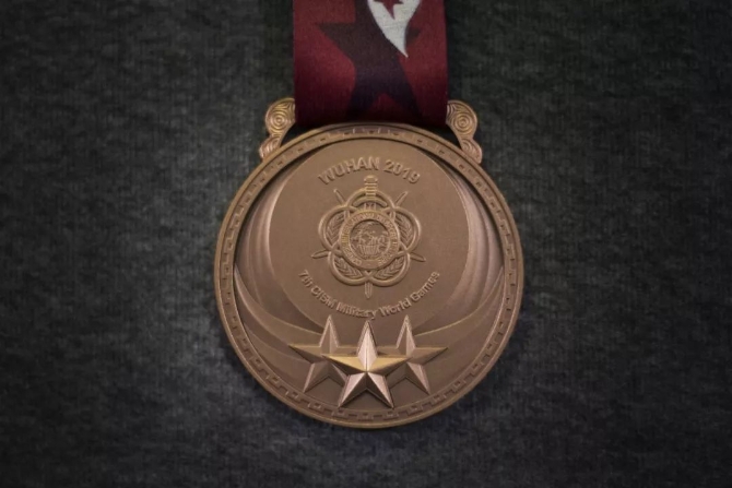 自去年5月17日軍運(yùn)會獎牌設(shè)計方案征集工作正式啟動以來,軍運(yùn)會獎牌工作經(jīng)歷了設(shè)計方案公開征集、專家評審等設(shè)計階段,歷經(jīng)預(yù)壓、酸洗、鍍金、印壓、鎏金等20項工藝,歷時數(shù)月的反復(fù)修改和打樣,最終完成了軍運(yùn)會獎牌制作。