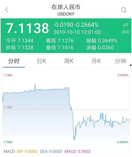 令人意外的是,短短幾小時(shí)小時(shí)后,離岸人民幣卻出現(xiàn)了短線(xiàn)飆升行情,日內(nèi)反彈超700個(gè)基點(diǎn),匯率升破7.10關(guān)口。與此同時(shí),貿(mào)易摩擦出現(xiàn)了一些緩和的跡象。