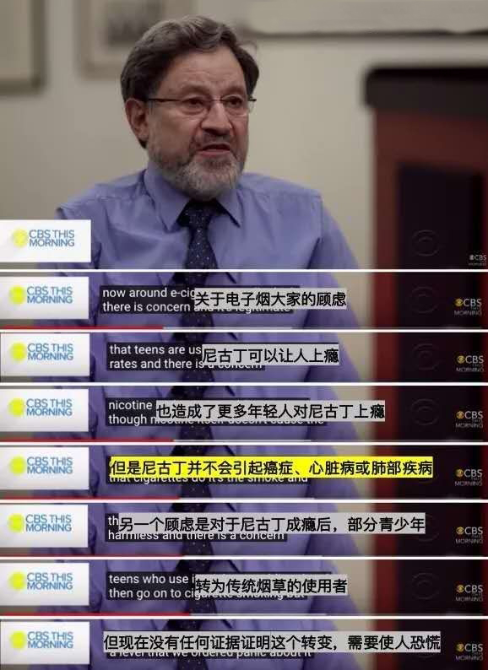 采訪中,David Abrams一再表示,已有充分有力的科學(xué)證據(jù)證明,尼古丁是成癮物質(zhì),但不致癌,電子煙中的有害成分至少比傳統(tǒng)的香煙危害少95%。他同時認為,從未發(fā)現(xiàn)合法正規(guī)渠道購買的電子煙出現(xiàn)疾病問題,電子煙民不必驚慌,請繼續(xù)堅持使用。