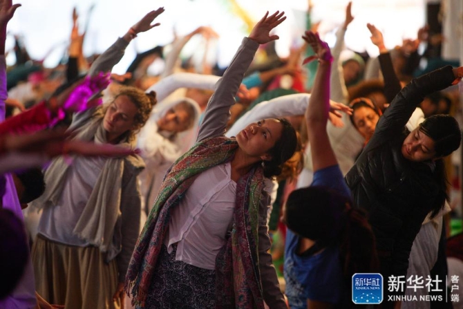 ↑這是來自世界各地的瑜伽練習(xí)者在印度北阿肯德邦里希蓋什舉行的第16屆國際瑜伽節(jié)開幕式上做瑜伽動作(2015年3月1日攝)。新華社記者 鄭煥松 攝