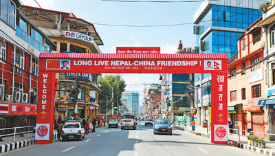 在習(xí)近平主席對(duì)尼泊爾進(jìn)行國(guó)事訪問(wèn)前夕,首都加德滿都街頭張貼出熱情歡迎的標(biāo)語(yǔ),洋溢著喜慶氣氛。記者趙益普/攝