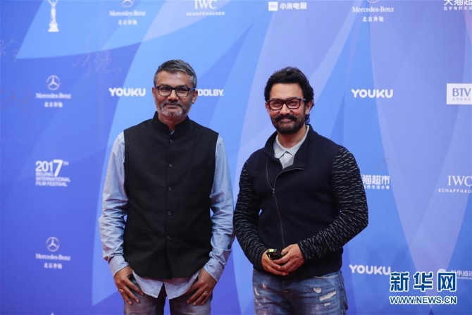 這是電影《摔跤吧!爸爸》劇組成員亮相第七屆北京國際電影節(jié)開幕紅毯(2017年4月16日攝)。 新華社記者 殷剛/攝