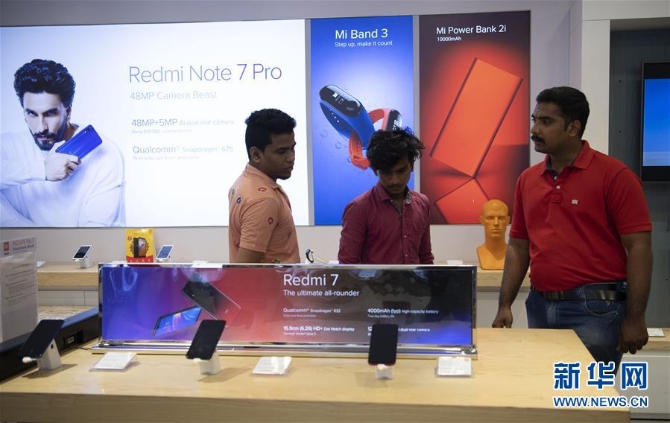 這是在印度金奈的一家商場,人們在中國品牌小米的門店購買手機(2019年10月8日攝)。 新華社記者 呂小煒/攝