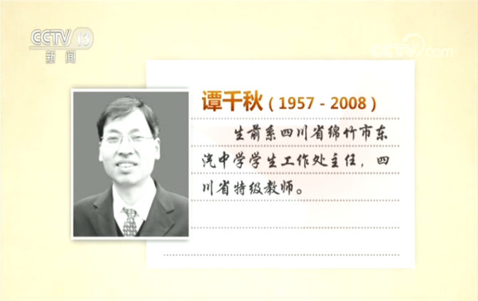譚千秋,生前系四川省綿竹市東汽中學學生工作處主任,四川省特級教師。