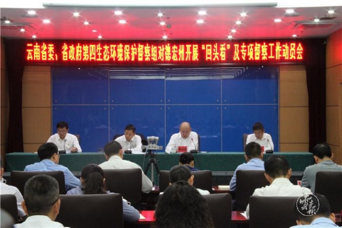 為深入學(xué)習(xí)貫徹習(xí)近平生態(tài)文明思想,全面落實(shí)黨中央、國務(wù)院和省委、省政府關(guān)于加強(qiáng)生態(tài)文明建設(shè)和生態(tài)環(huán)境保護(hù)工作的決策部署要求,經(jīng)省政府批準(zhǔn),2019年10月15日,省委、省政府第四生態(tài)環(huán)境保護(hù)督察組對德宏州開展省級生態(tài)環(huán)境保護(hù)督察“回頭看”工作動員會在芒市召開,督察組組長陳志國、副組長蘭駿就做好督察工作分別講話。德宏州委副書記、州長衛(wèi)崗代表州委、州政府作動員講話。州人大、政協(xié)有關(guān)負(fù)責(zé)同志等參加會議。副州長李朝偉主持會議。