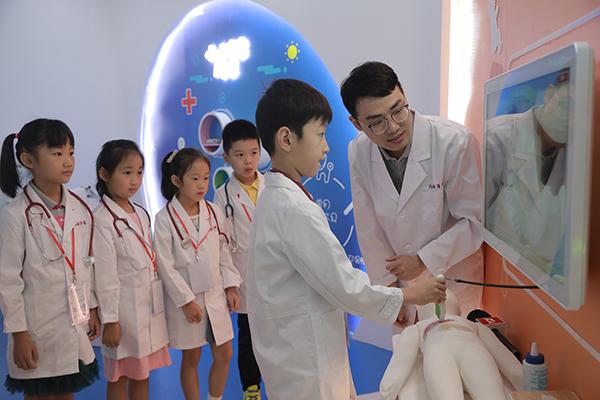 小朋友在兒童醫(yī)學(xué)體驗(yàn)館