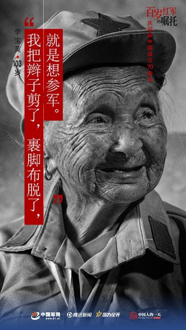 “我把辮子剪了,裹腳布脫了,就是想?yún)④姟C飨?,共產(chǎn)黨好,我年輕時做了一些該做的事,沒有想到黨給了我這么高的榮譽?!薄顚氂ⅰ?03歲