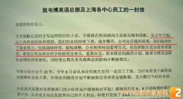 記者了解到,目前韋博英語培訓(xùn)機(jī)構(gòu)只在公眾號上發(fā)布了一篇名為“致韋博總部及上海各中心員工一封信”。
