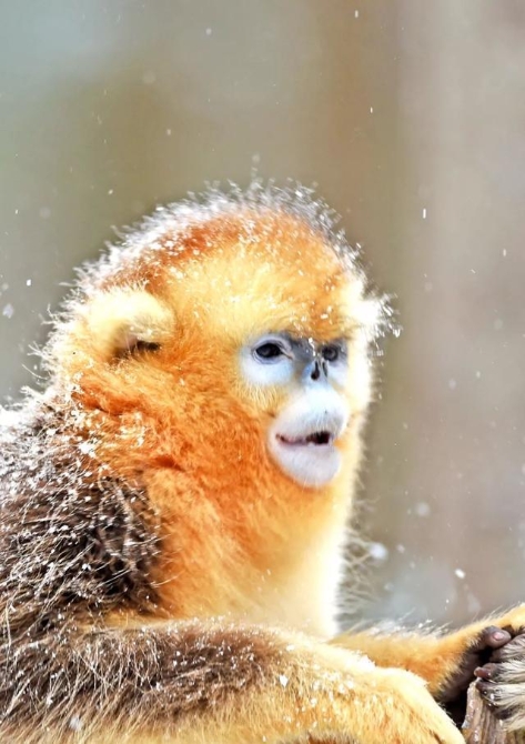 神農(nóng)架金絲猴戲冬雪(攝影 劉曙松)