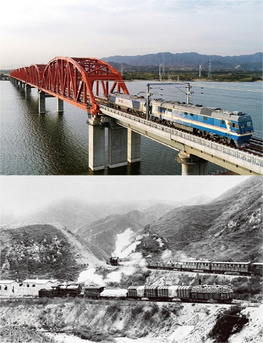 從京張鐵路到京張高鐵,見證了新中國交通運(yùn)輸事業(yè)發(fā)展的輝煌成就。1909年,中國人自行設(shè)計(jì)和建造了第一條干線鐵路——京張鐵路,從此打破了外國人壟斷修建中國鐵路的局面。2019年底,我國首條智能高鐵——京張高鐵將正式開通運(yùn)營。京張高鐵是第一條首次采用我國自主研發(fā)的北斗衛(wèi)星導(dǎo)航系統(tǒng)、設(shè)計(jì)時(shí)速為350公里的智能化高速鐵路。上圖為2019年9月19日京張高鐵全線展開接觸網(wǎng)帶電熱滑試驗(yàn)(人民圖片 李忠民/攝)。下圖為京張鐵路青龍橋車站附近的人字軌——這是我國著名工程專家詹天佑的創(chuàng)造性設(shè)計(jì)(新華社發(fā))。