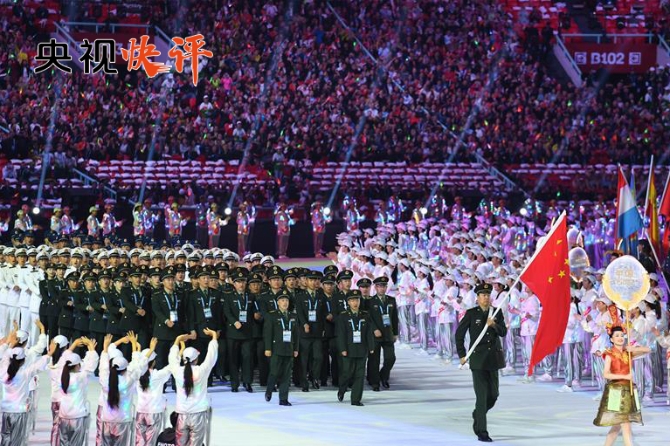中國主動申辦、積極承辦軍運會,為世界各國軍人展示形象、增進友誼搭建平臺,充分體現(xiàn)了作為國際軍體成員國的責任擔當,向世界表明了愛好和平、追求和平、維護和平的堅定信念,再次用實際行動兌現(xiàn)了“堅持和平發(fā)展道路,奉行互利共贏的開放戰(zhàn)略”的莊嚴承諾。