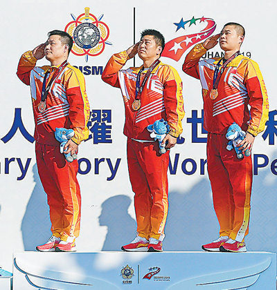 6秒時(shí)間,5發(fā)子彈,毫厘之間,勝負(fù)已判。贏了!中國(guó)隊(duì)的排名定格在第一位。最后一組出場(chǎng)的姚兆楠以近乎完美的表現(xiàn)鎖定勝局,最終,他和謝振翔、金泳德組成的中國(guó)隊(duì)以1747環(huán)的總成績(jī)奪得冠軍,將本屆軍運(yùn)會(huì)的首枚金牌收入囊中。