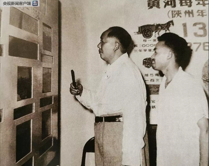 31日,毛澤東同志登上鄭州邙山小頂山,察看邙山水庫壩址和黃河形勢。攝影師為我們留下了這歷史性的一刻。