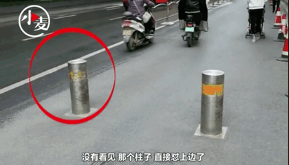 “心里有點急,當時下著雨帶著眼鏡和頭盔,沒看到隔離柱直接撞上了。”