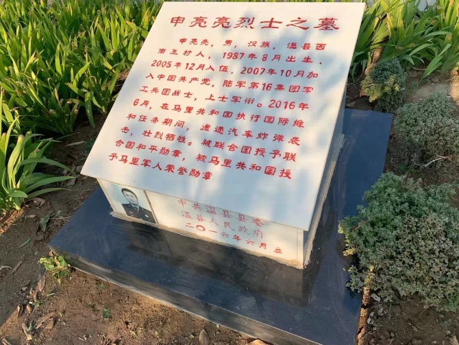 馬里時間2016年5月31日凌晨2點50分,在聯(lián)合國駐馬里維和部隊營地,29歲的維和戰(zhàn)士申亮亮和戰(zhàn)友執(zhí)行站崗任務時遭遇暴恐分子汽車炸彈襲擊。他第一時間向營地發(fā)出警報,在炸彈爆炸瞬間,申亮亮一把推開了一同站哨的戰(zhàn)友司崇昶。
