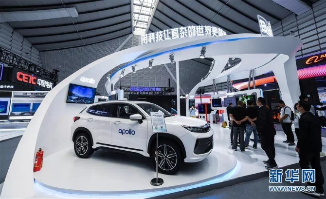 10月18日,這是互聯(lián)網(wǎng)之光博覽會(huì)現(xiàn)場(chǎng)展示的基于自動(dòng)駕駛平臺(tái)的互聯(lián)網(wǎng)汽車(chē)。新華社記者 徐昱 攝
