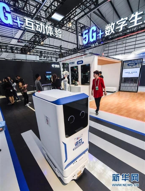 10月18日,這是互聯(lián)網(wǎng)之光博覽會(huì)現(xiàn)場(chǎng)展示的一款基于5G技術(shù)的醫(yī)院物流機(jī)器人。新華社記者 徐昱 攝