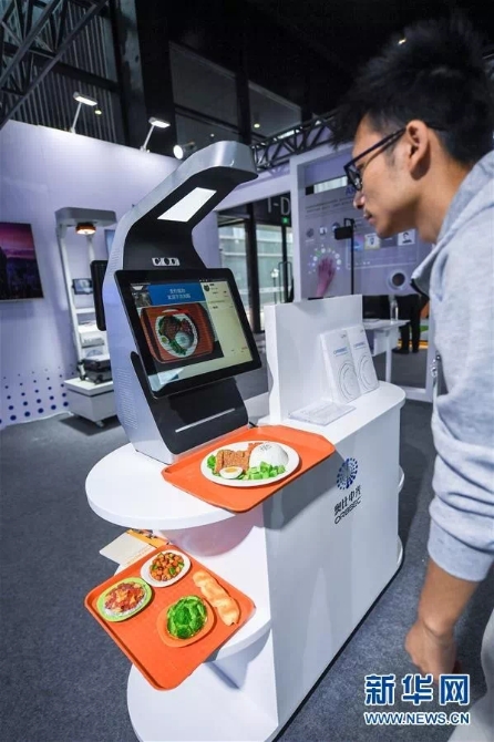 10月18日,這是互聯(lián)網(wǎng)之光博覽會(huì)現(xiàn)場(chǎng)展示的一款自動(dòng)識(shí)別菜品并通過(guò)人臉識(shí)別結(jié)賬的食堂新系統(tǒng)。新華社記者 徐昱 攝