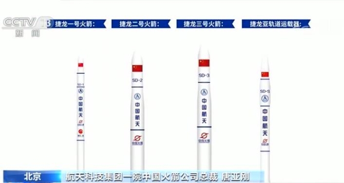航天科技集團(tuán)一院中國火箭公司總裁 唐亞剛:捷龍一號主要是一個微小型火箭,能夠提供500公里(軌道)200公斤的運(yùn)載能力,它針對的對象主要是百公斤級以下的微小衛(wèi)星和立方星的單星的驗證、發(fā)射。捷龍二號、三號就是運(yùn)載能力更大的固體火箭,捷龍二號是500公斤,捷龍三號是1.5噸。它們針對的對象是大規(guī)模的星座組網(wǎng)發(fā)射。我們預(yù)計捷龍二號是明年年底完成首飛,捷龍三號是2021年底完成首飛。