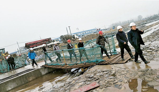 2019年1月19日下午4時(shí),余元君在錢糧湖垸分洪閘項(xiàng)目工地因公殉職,46歲的生命永遠(yuǎn)留在了洞庭湖。圖為余元君(右一)去世當(dāng)天在工地現(xiàn)場(chǎng)檢查工作時(shí)留下的最后影像。 湖南省水利廳供圖