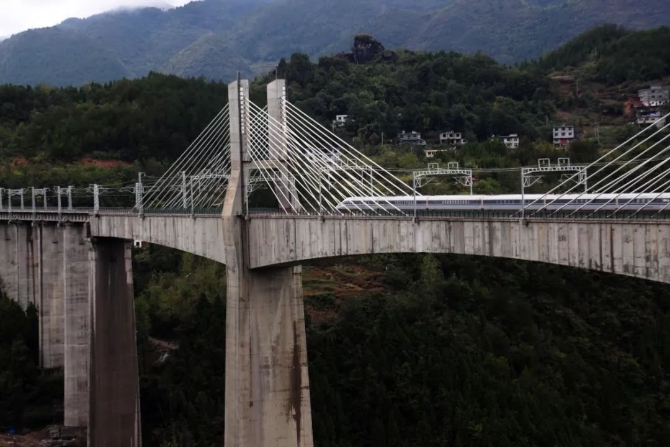 9月25日,黔張常鐵路全線開始聯(lián)調(diào)聯(lián)試。黔張常鐵路西起重慶黔江,東至湖南常德,90%以上地處武陵山區(qū),共開鑿隧道100座,架設(shè)橋梁187座,全線橋隧比77.9%,設(shè)計時速200公里。