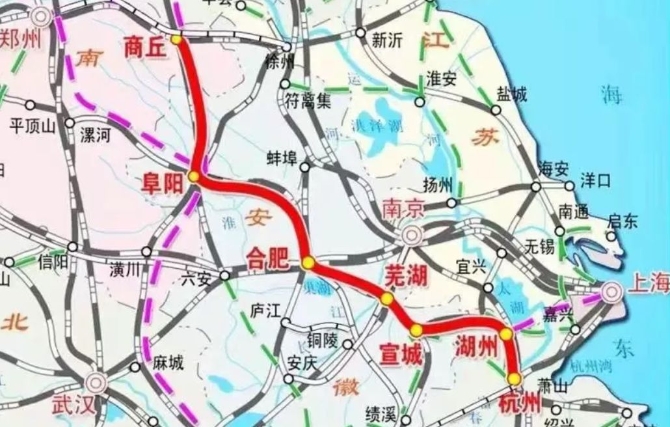 鄭阜高鐵作為河南米字形高鐵的一“捺”,北起鄭州南站,經(jīng)河南鄭州、開封、許昌,接入商合杭高鐵阜陽西站,設(shè)計時速350公里。通車后,鄭阜高鐵將與商合杭高鐵共同形成中西部與華東地區(qū)、長三角地區(qū)的快速客運通道。