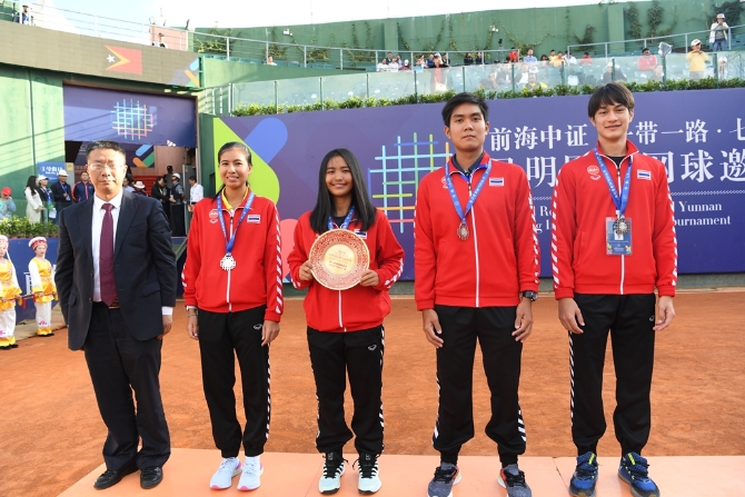 “一帶一路·七彩云南”昆明國(guó)際網(wǎng)球邀請(qǐng)賽頒獎(jiǎng)儀式現(xiàn)場(chǎng)(彭杰攝)