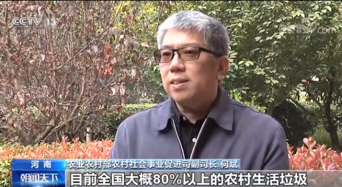 農業(yè)農村部農村社會事業(yè)促進司副司長 何斌 :從目前來看,現(xiàn)在全國大概80%以上的農村生活垃圾都得到了處理,比2017年大概提高了七個百分點。