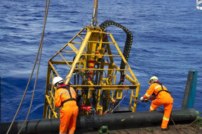 “海洋六號”船在西太平洋執(zhí)行中國大洋55航次期間開展深海淺鉆作業(yè)