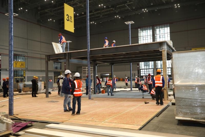 第二屆進(jìn)博會(huì)正在進(jìn)入場(chǎng)館搭建的最后沖刺階段。 李茂君攝