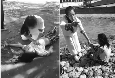 救人現(xiàn)場,張蓉給落水女童做心肺復(fù)蘇。