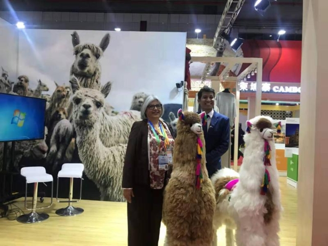 秘魯國家館,總體設(shè)計充分吸收了秘魯傳統(tǒng)建筑和紡織技藝的精華,其縱橫交錯的絲線繪制出色彩斑斕的上古神獸與幾何圖案。秘魯是全世界羊駝最多的國家,高端紡織品是其特色。去年進博會上,秘魯國家館將巨大“羊駝”擺入展館,成為網(wǎng)紅打卡地。今年這一“吸睛”做法將得到延續(xù)。