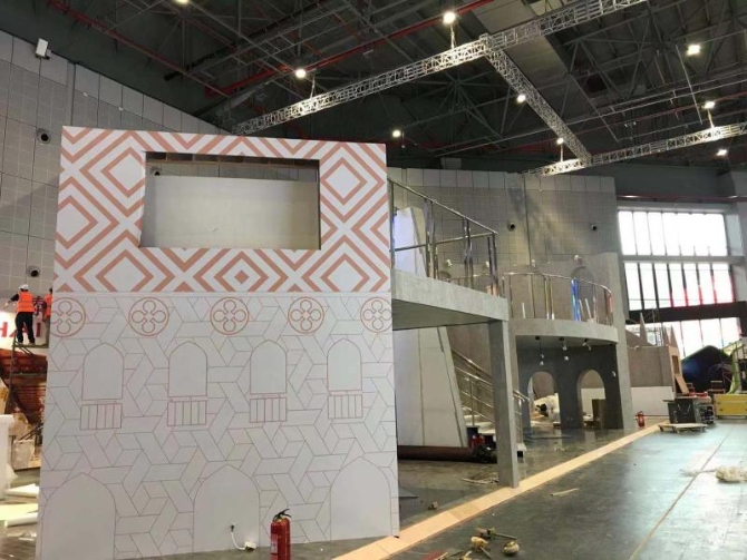 從搭建現(xiàn)狀看來,意大利展臺是為數(shù)不多的“兩層建筑”。以商業(yè)和旅游景點作為主要設(shè)計的靈感來源,意大利展臺選擇創(chuàng)立一個“小城市”的概念,遴選了極具意大利特色的標志性著名歷史遺跡元素,融合了模塊化和多功能性的設(shè)計理念,將文藝復(fù)興之國的千年意蘊濃縮在256平方米之間。