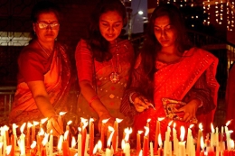 10月27日,在尼泊爾加德滿都拍攝的慶祝排燈節(jié)的裝飾燈光。新華社 西霸/攝