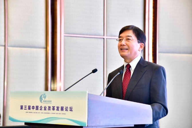 第三屆中國企業(yè)改革發(fā)展論壇于11月2日-4日在山東濟(jì)南舉辦。圖為國務(wù)院國資委研究中心主任李明星發(fā)布《中央企業(yè)高質(zhì)量發(fā)展報(bào)告》。記者 郭緒雷 攝