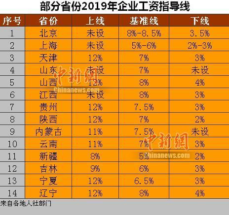 14省份2019年企業(yè)工資指導(dǎo)線
