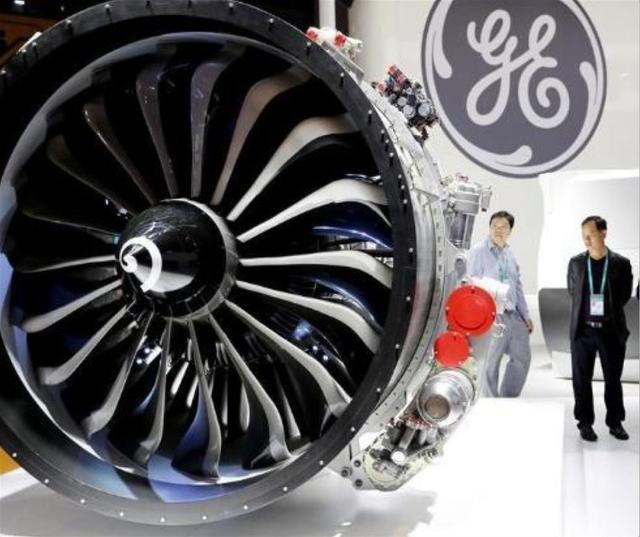 △首屆進(jìn)博會(huì)上,美國(guó)通用電氣公司展出的飛機(jī)發(fā)動(dòng)機(jī)模型。