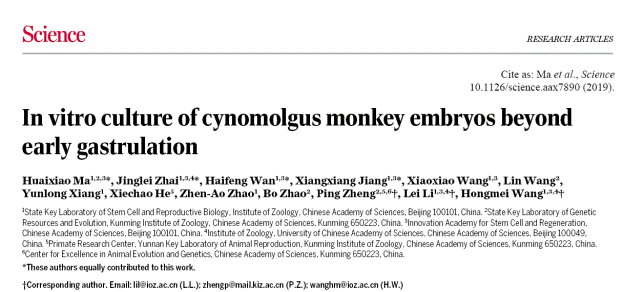記者4日從中國科學(xué)院昆明動物研究所獲悉,中國科學(xué)院多個(gè)團(tuán)隊(duì)合作,首次在體外重現(xiàn)了非人靈長類動物胚胎原腸運(yùn)動的發(fā)生。國際權(quán)威期刊《科學(xué)》近日以“研究文章”形式,在線發(fā)表了這一成果,為研究靈長類動物早期胚胎發(fā)育過程建立了重要的研究基礎(chǔ)。