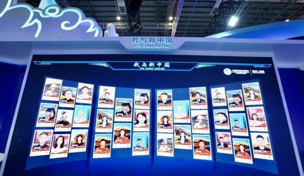 圖說:第二屆進(jìn)博會(huì)中國(guó)國(guó)家館,“我與新中國(guó)”互動(dòng)多媒體照片墻
